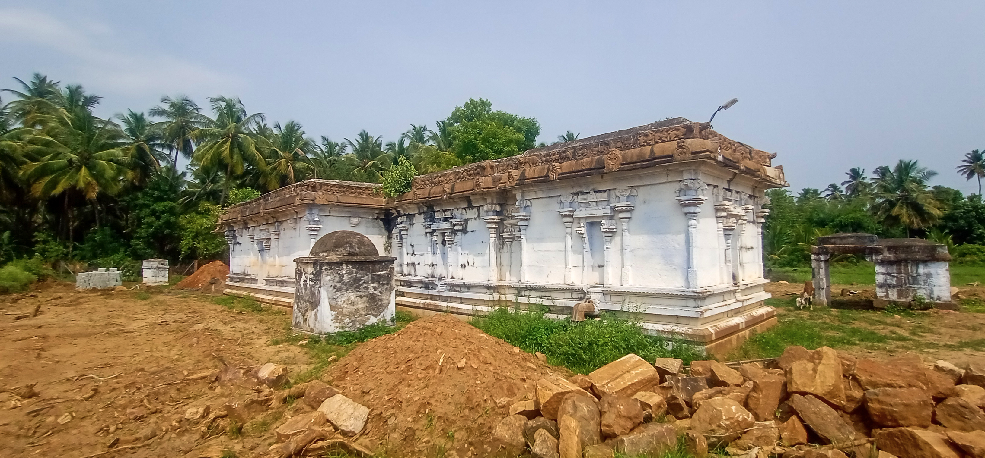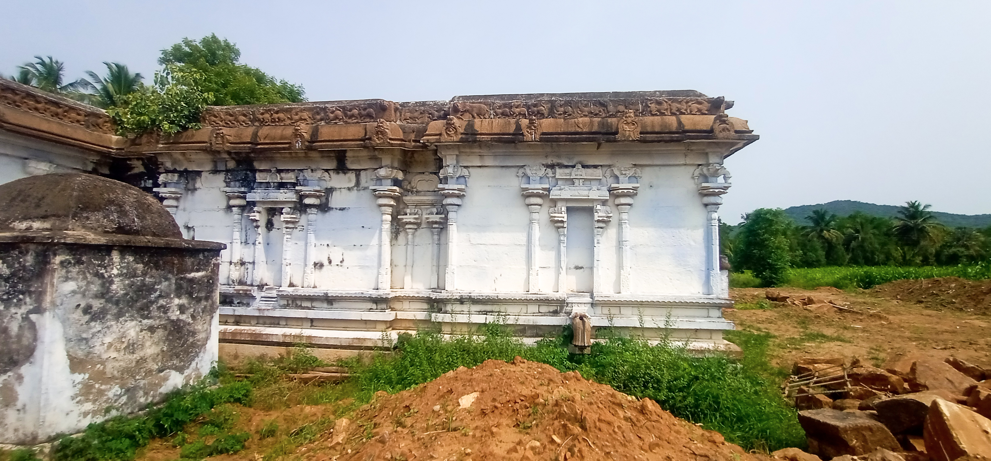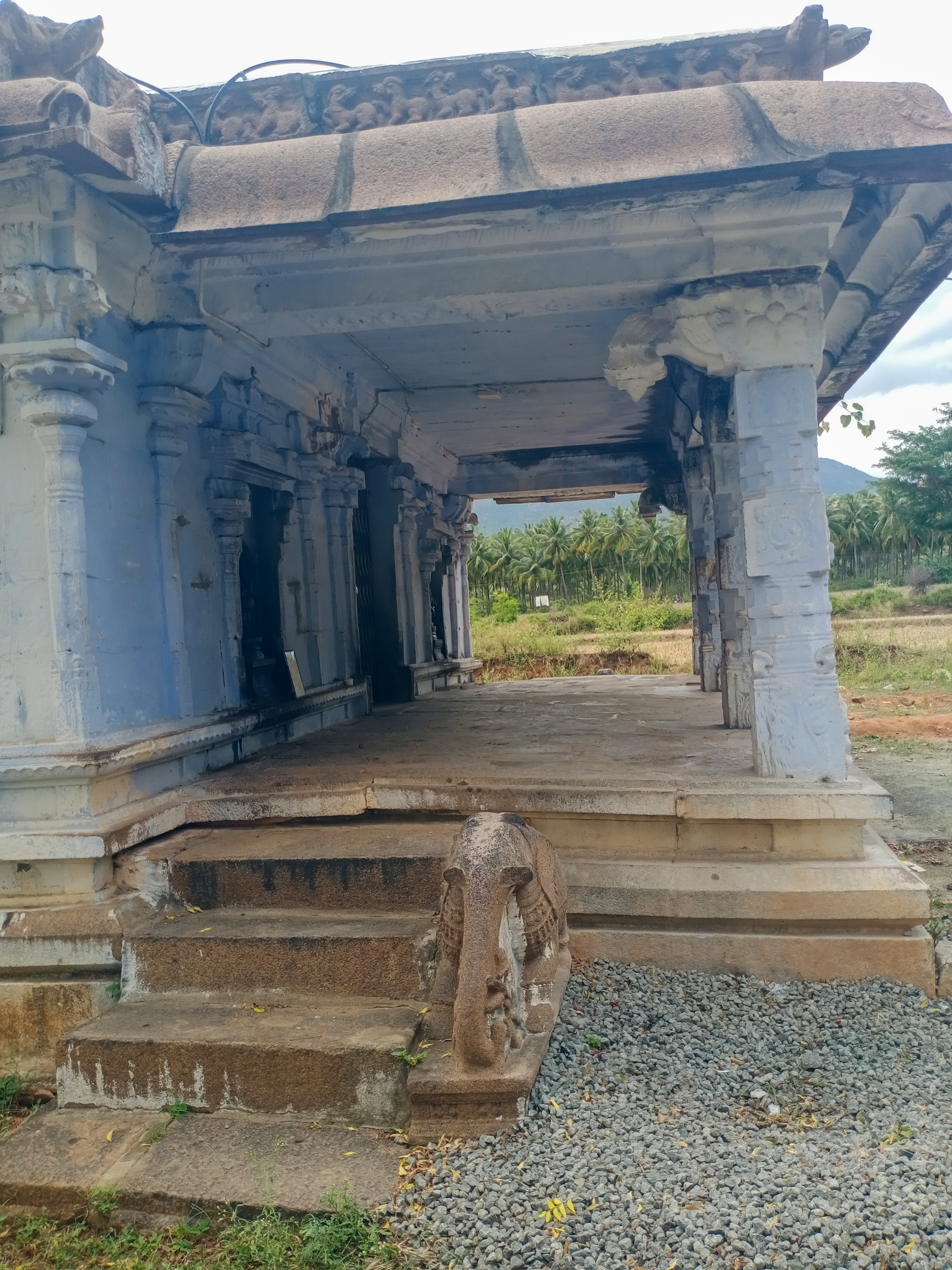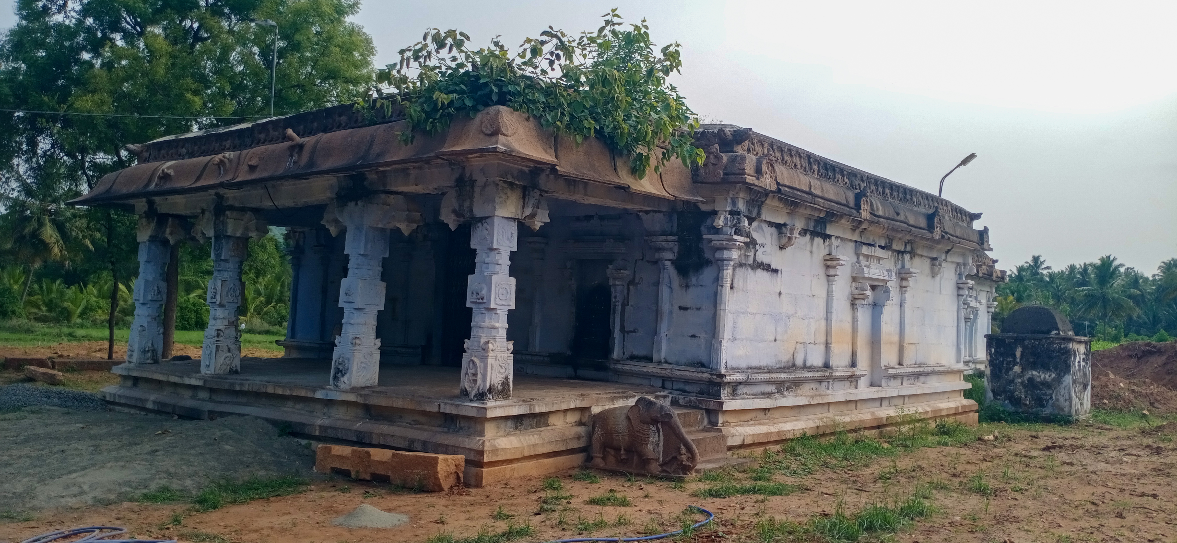 இக்கோயிலில் உள்ள எல்லாக் கோட்டசிற்பங்களும், அரைத்தூண்களும், தூண் சிற்பங்களும் மிகவும் நேர்த்தியாக உள்ளன. இங்கு மூன்று தமிழ் கல்வெட்டுகள் காணப்படுகின்றன. இக்கோயிலைச்சுற்றி சிதறிக்கிடக்கும் கற்களை வைத்துப் பார்க்கும்போது, இங்கிருந்த விமானம் இடிந்து விழுந்திருக்கவேண்டும் என்று தெரிகிறது.