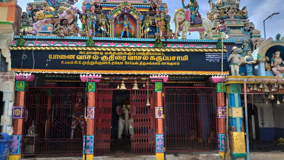 கிழக்கு நோக்கி அமைந்துள்ள இக்கோயிலில், மொத்தம் 42 தெய்வங்கள் உள்ளன. தனது வம்சாவளிகள் சிதறிப்போகாமல் இருக்க, அவர்களுக்குச் சாமியில் பங்கு கொடுத்து, உரிமையாக இணைத்துக்கொண்டு, இனக்குழுப் பெருக்கத்திற்கேற்பப் பரிவாரத் தெய்வங்களின் பெருக்கமும் இருக்கிறது. இங்குப் பல சிறு சந்நிதிகள், கொடிமரம், வழிபாட்டுத் தூண், யானைவாசல், குதிரைவாசல் மற்றும் தனிச் சிற்பங்கள் உள்ளன.