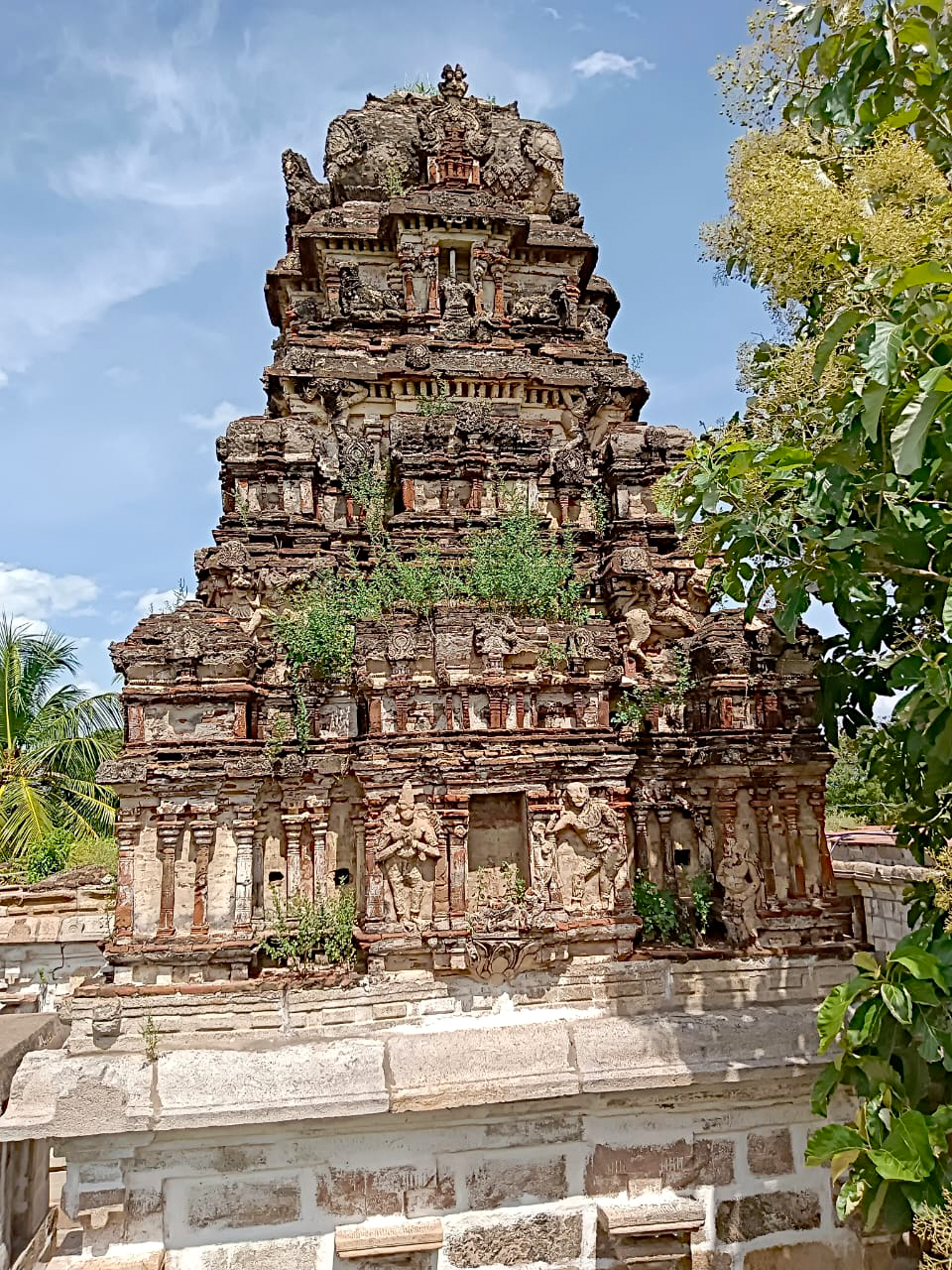 விமானம், கருவறை, அர்த்தமண்டபம், முன் மண்டபம், நந்தி மண்டபம் மற்றும் தட்சிணாமூர்த்தி சந்நிதி, முருகன் சந்நிதி, விநாயகர் சந்நிதி போன்ற கட்டுமானங்கள் காணப்படுகின்றன.