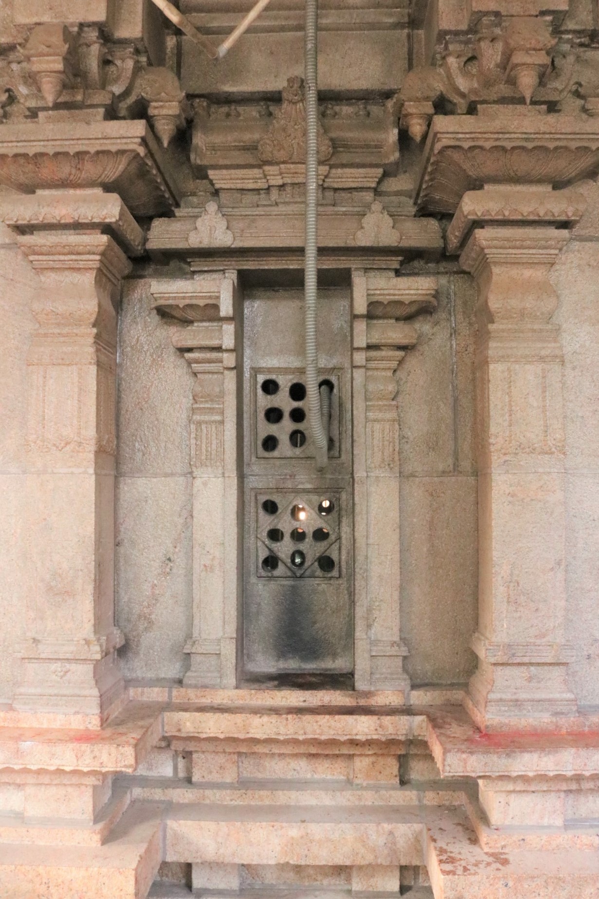 கோவிலைச் சுற்றி மதில்சுவர் அமைக்கப்பட்டுள்ளது. கருவறையின் மேல் விமானமும் உள்ளது.