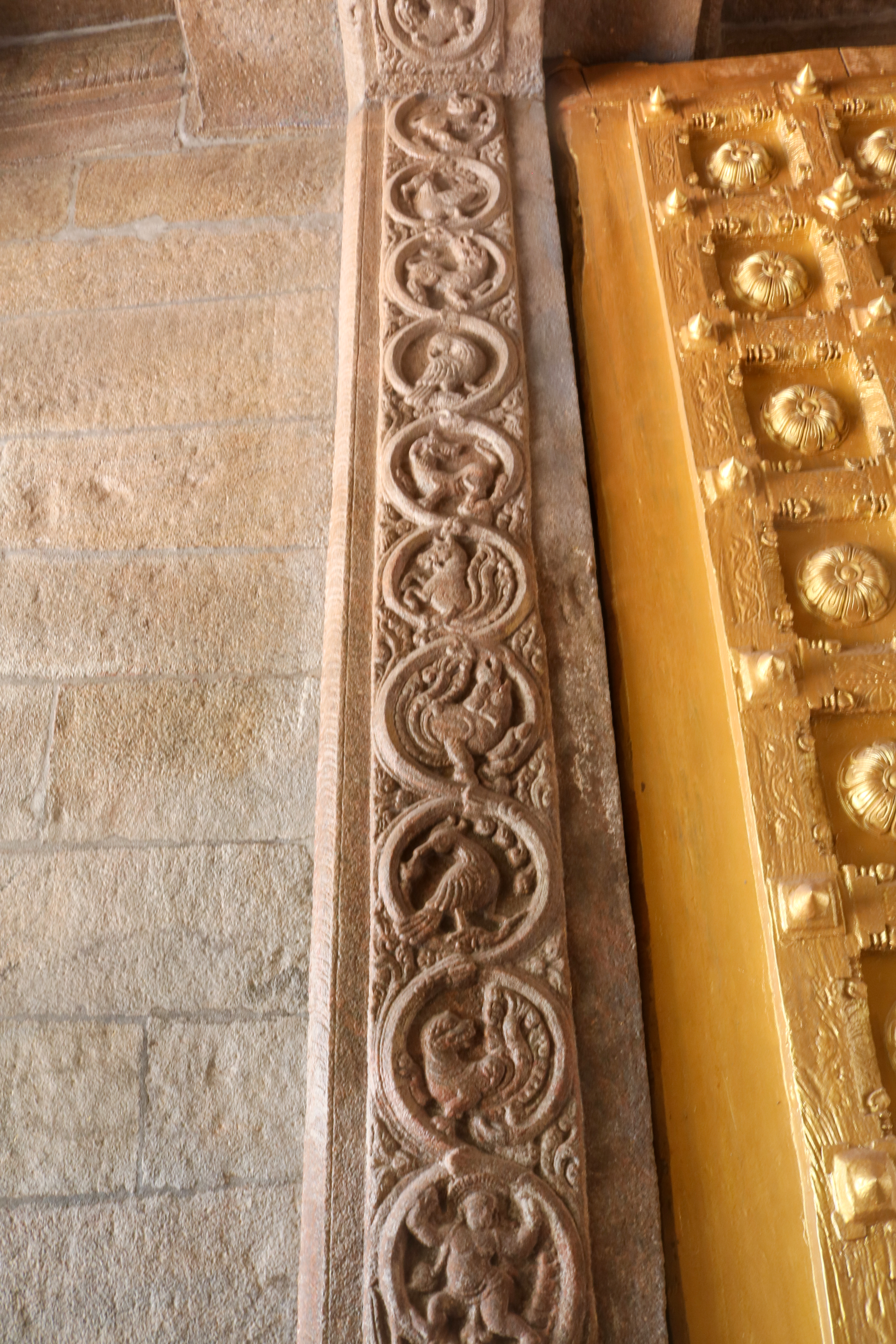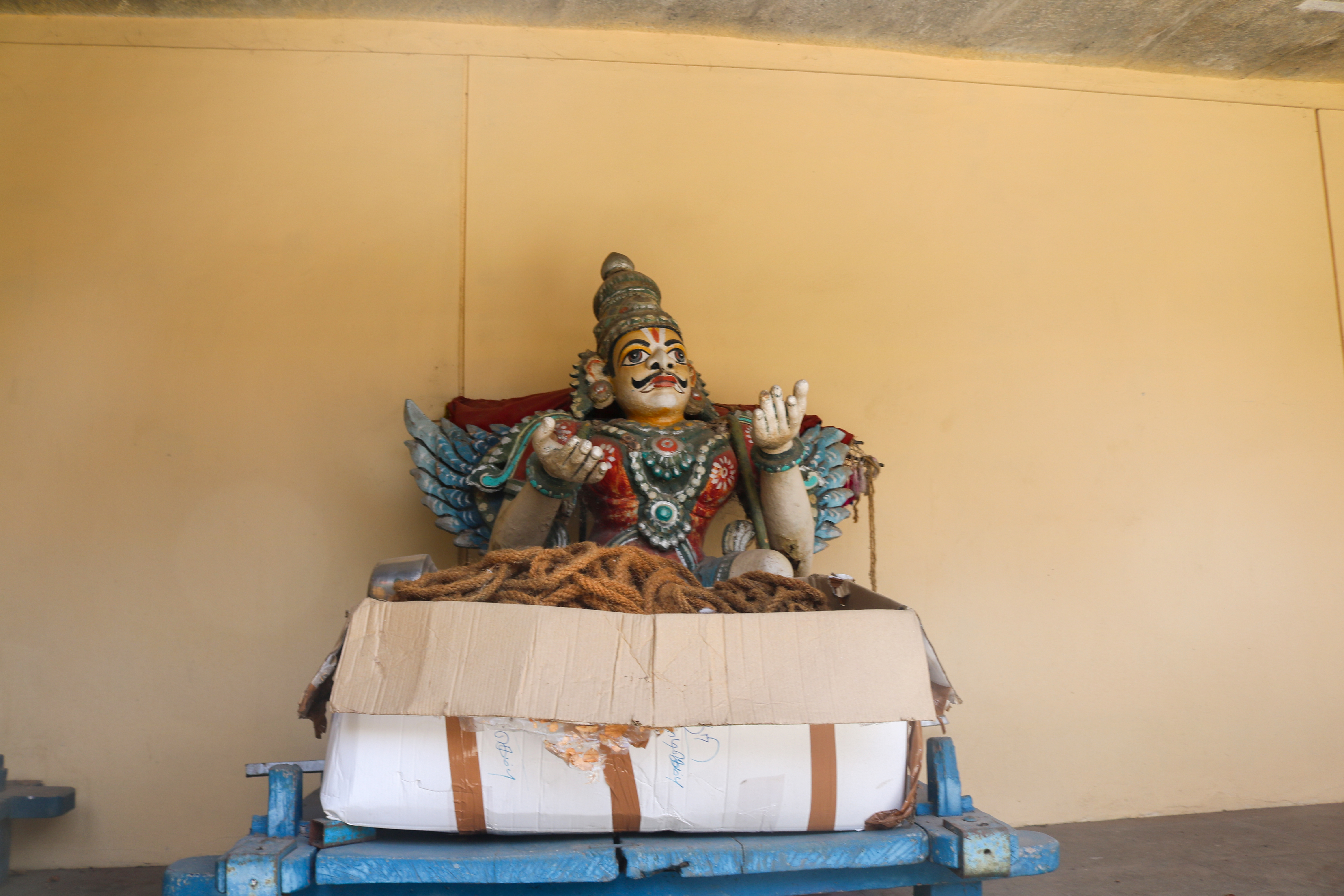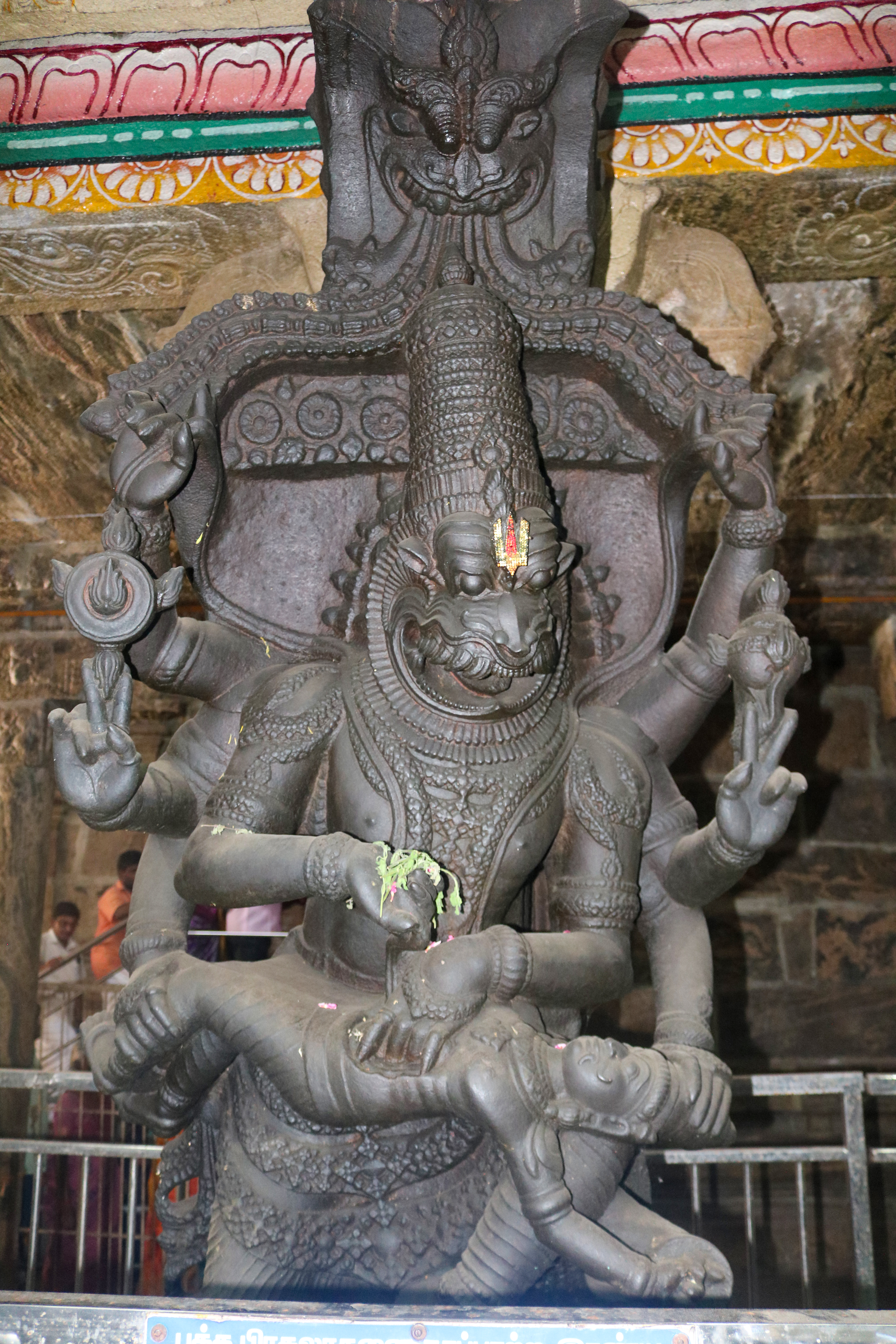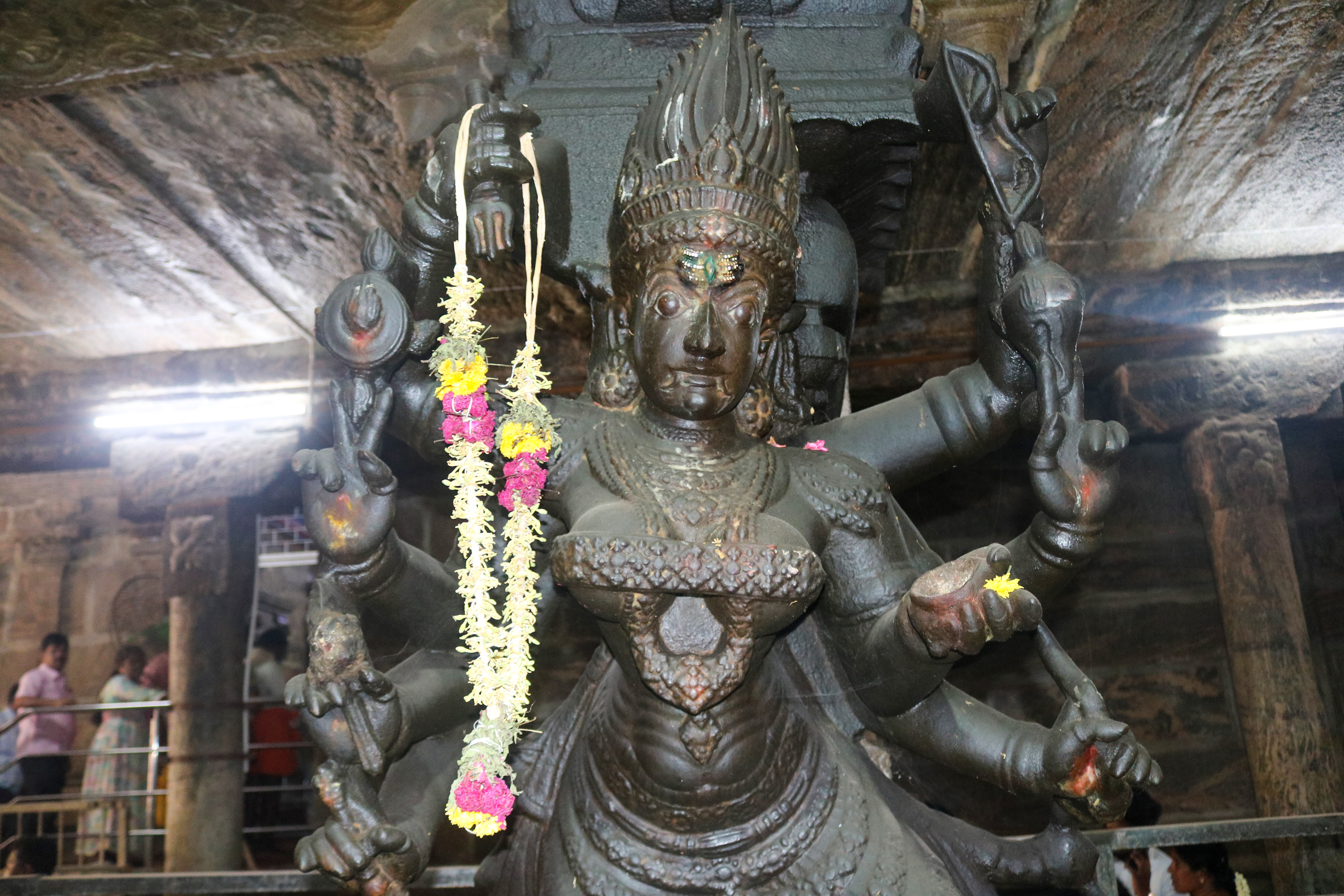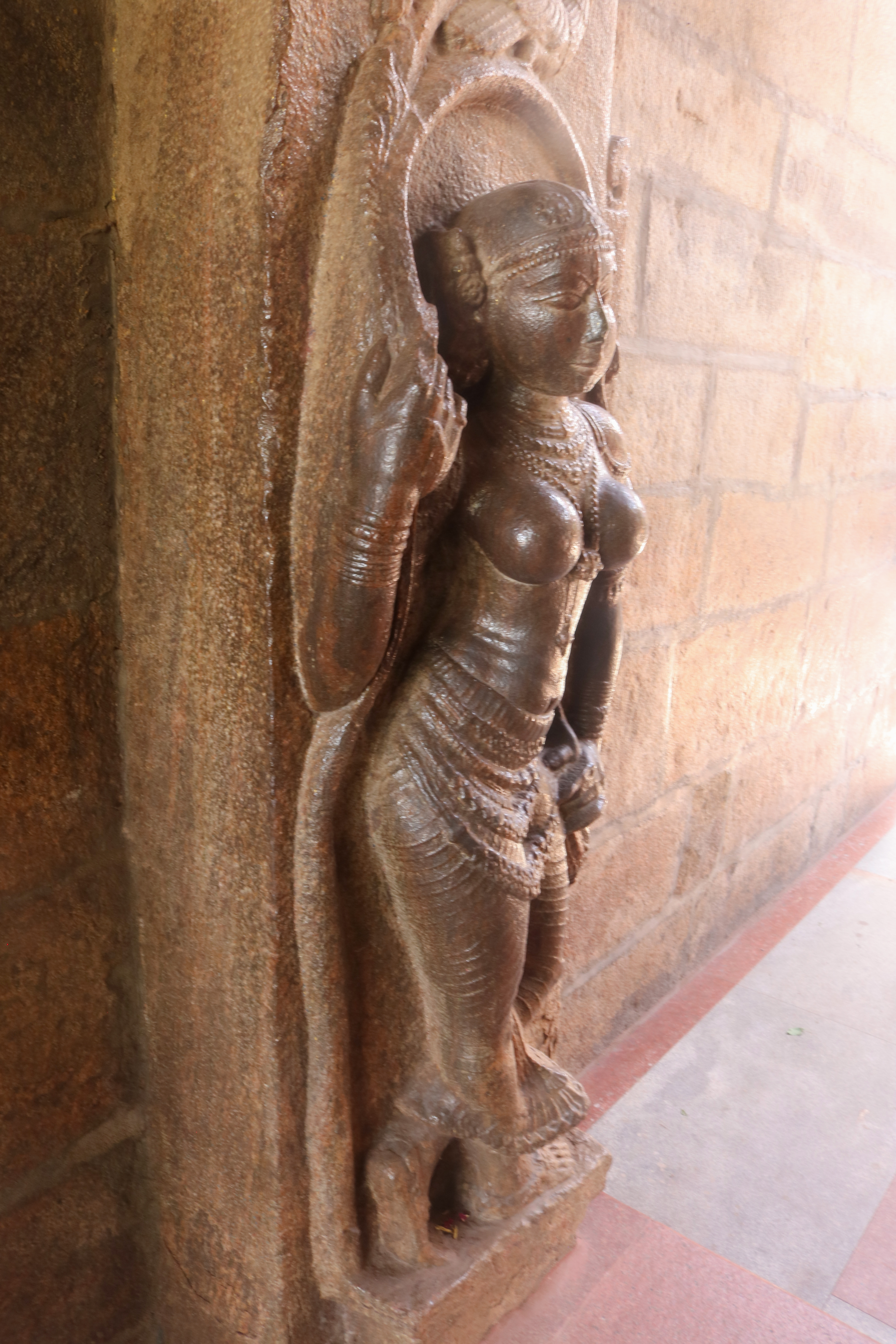 இக்கோயிலிலுள்ள மகாமண்டம், ஊஞ்சல் மண்டபம் மற்றும் அரங்க மண்டபத்தில் உள்ள தூண்களும் அதிலுள்ள சிற்பங்களும் மிக நேர்த்தியான கலைப்படைப்பாக உருவாக்கப்பட்டுள்ளன. மகாமண்டபத்தில் இசைத் தூண்கள் காணப்படுகின்றன. அரங்க மண்டபத்தில் உள்ள பதினான்கு தூண்களில் பிரம்மாண்டமாக ஒற்றைக் கல்லால் சிற்பங்கள் வடிக்கப்பட்டுள்ளன. இவற்றில் மகாபாரதம், இராமாயணம் தொடர்பான சிற்பங்களோடு பிற சைவ, வைணவம் தொடர்பான சிற்பங்களும் காணப்படுகின்றன. வைணவ மற்றும் சைவக் கருப்பொருள்கள் ஒன்றோடொன்று இணைக்கப்படுவது நாயக்கர் கோயில்களில் அவ்வப்போது பின்பற்றப்பட்டது. அந்த வகையில் இக்கோயிலில் சைவ, வைணவ கருத்துக்கள் பிரிவினையின்றிக் காணப்படுகின்றன. இது ஆட்சியாளர்கள் மற்றும் பொதுமக்களிடம் இருக்கும் சகிப்புத்தன்மையைப் பறைசாற்றும் வகையில் அமைந்துள்ளது.